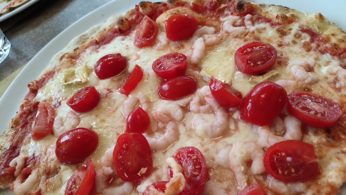 For seafood enthusiasts, the Pizza Gamberetti E Pomodorini is a must-try, with succulent shrimp paired beautifully with fresh tomatoes. On the lighter side, the Tonno Mozzarella Pomodorini Fuori Cottura brings together tuna, mozzarella, and tomatoes, creating a fresh and flavorful pizza that will leave you wanting more. If you're in the mood for something to start your meal, the Bruschetta is a perfect choice, offering crispy bread topped with a mixture of fresh tomatoes, garlic, and olive oil.